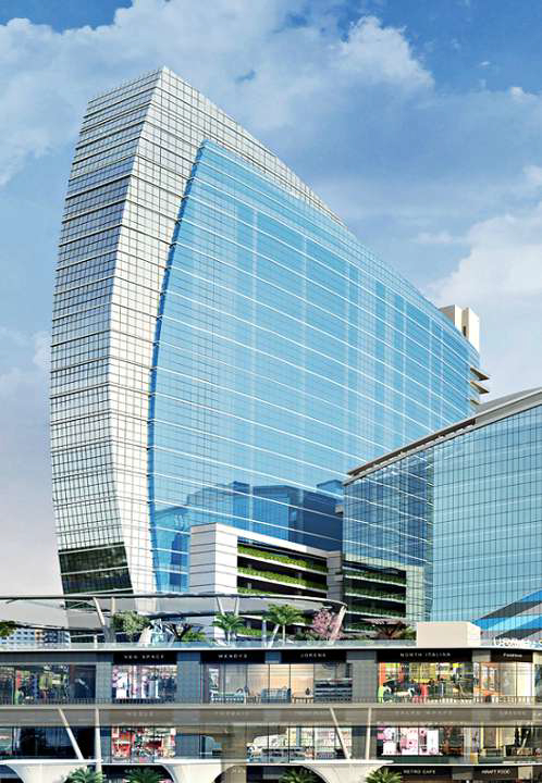 Facade project featuring glazing and cladding with louvers, delivering a crisp contemporary envelope and durable performance for this development in Baner, Pune.