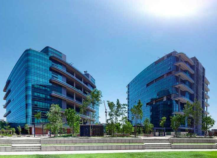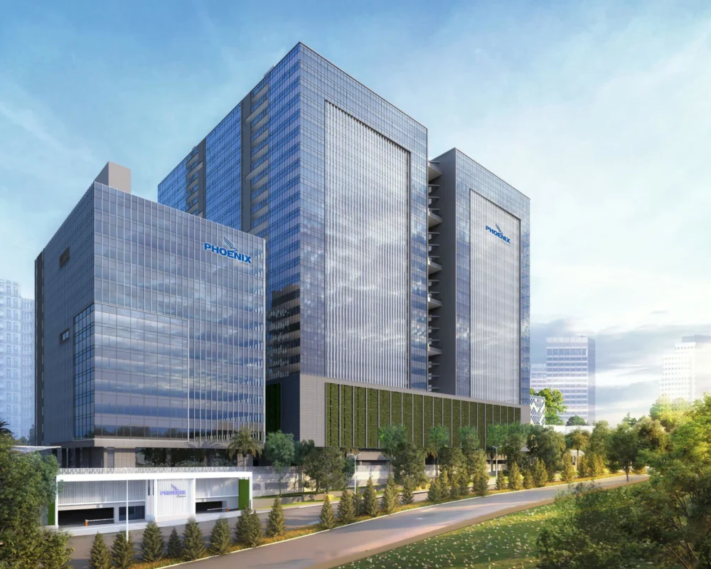 Facade project featuring unitized glazing with cladding, louvers, and entrance spider, delivering a crisp contemporary envelope and durable performance for this development in Hyderabad.